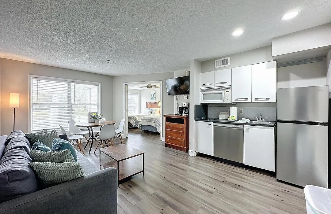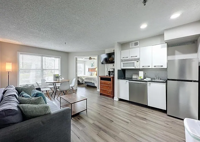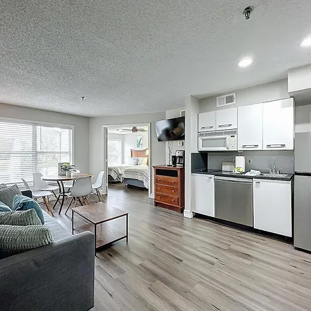 La villa Parkway Palms Resort 1 Bed Condo Mins To Disney viene equipada con comodidades de autoservicio, incluyendo una cocina bien equipada, una zona de comedor y un comedor al aire libre para que los huéspedes disfruten. En la cocina también hay hervidor eléctrico, horno y menaje de cocina. Los huéspedes pueden comer en el restaurante Charley's Steak House & Seafood Grille, situado a tan solo 1 km. La estación de autobuses West Irlo Bronson Memorial Highway and Parkway Boulevard está al alcance de esta casa de vacaciones.